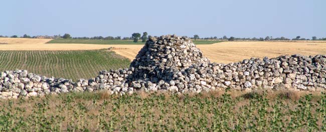 No se ven grandes extensiones de sembrados, y en su lugar aparecen rebaños de ovejas caracterizados por ir acompañados de un burro que hace de porteador al pastor.