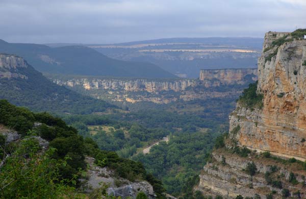 Acabamos de entrar en el Valle de Sedano y aunque el asfalto está en mejor estado, el paisaje es parecido al anterior, pues nos sigue acompañando del río Moradillo.