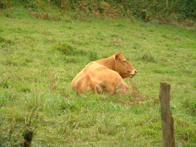 Atravesamos Aizama por un firme adoquinado y 5 km después llegamos a un cruce en forma de T no sin antes ver varias vacas. Girando a la izda y tras avanzar solo unos metros accedemos a Iraeta, final de este tramo.